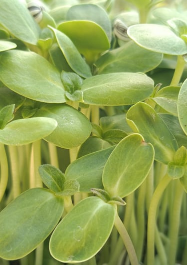 Os microvegetais de girassol são uma fonte poderosa de nutrientes, contendo vitaminas A, complexo B, E e K, além de minerais como cálcio, ferro, magnésio e potácio.