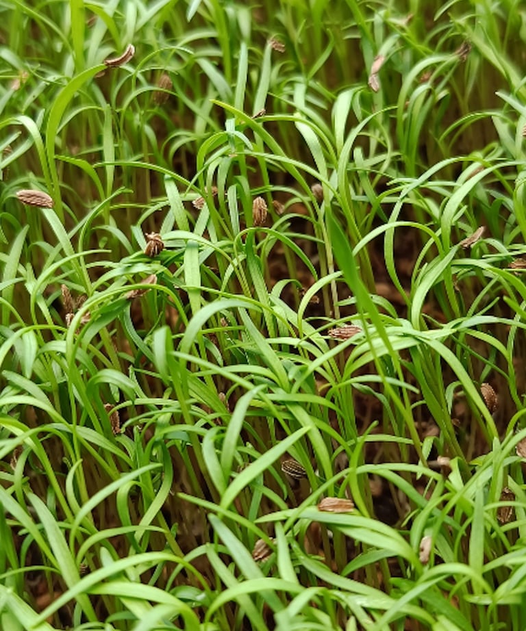 Os microsvegetais de cenoura são ricos m vitaminas A, C e E, além de minerais essenciais com cálcio e ferro.